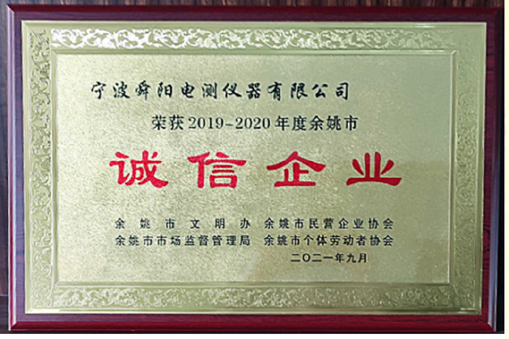 2021年9月,被余姚市文明辦、余姚市市場監(jiān)督管理局、余姚市民營企業(yè)協(xié)會(huì)聯(lián)合評定為2019-2020年度余姚市“誠信企業(yè)”