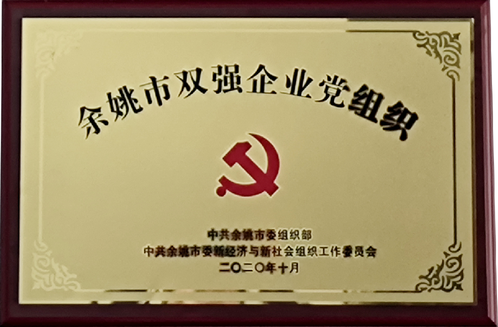 2020年10月被余姚市委組織部、中共余姚市委新經(jīng)濟(jì)與新社會(huì)組織工作委員會(huì)評(píng)為余姚市兩新組織“雙強(qiáng)”黨組織