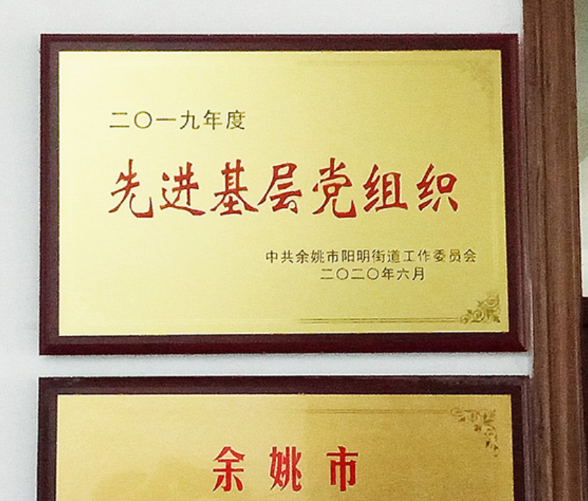 2020年6月被中共余姚市陽(yáng)明街道工作委員會(huì)評(píng)為2019年度先進(jìn)基層黨組織