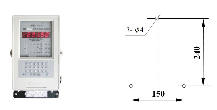 DT1/G系列電壓監(jiān)測(cè)儀采用鐵質(zhì)底盤,塑料罩殼,其外部形狀與三相電能表相仿。其外形尺寸為260×150×